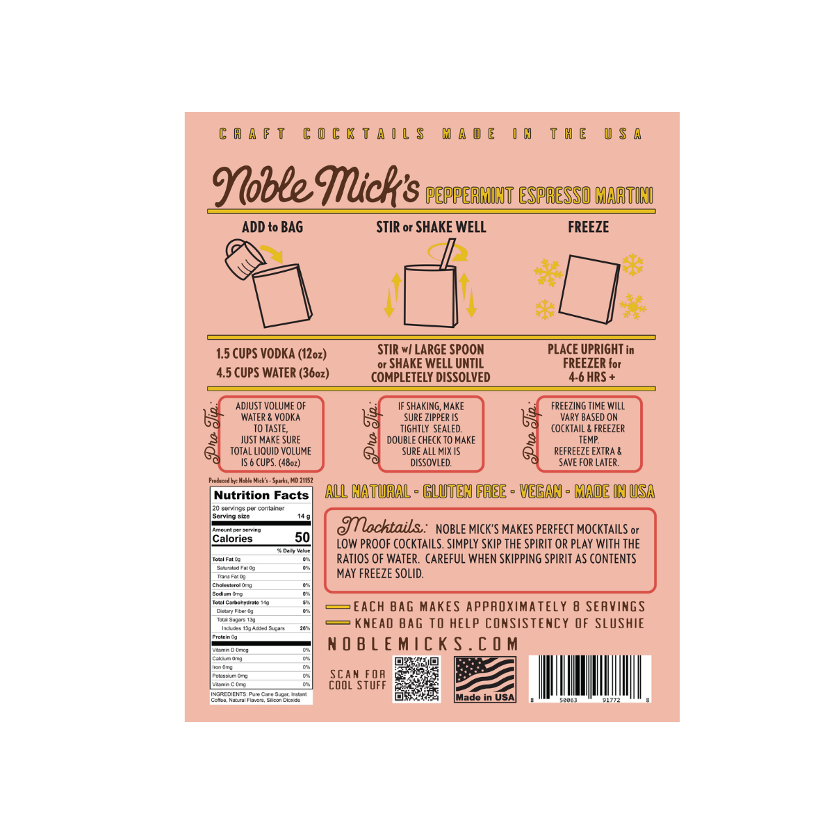 Frozen Cocktails don't get easier than this! Each bag makes 8 servings. No blenders ever! Simply add 1.5 cups of vodka and 4.5 cups of water (total 6 cups of liquid), shake or stir and throw in the freezer. Then serve right from the bag.